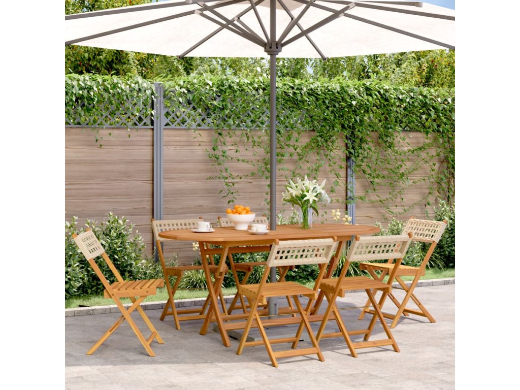 - Materiál: masivní akáciové dřevo s olejovou povrchovou úpravou, PE ratan