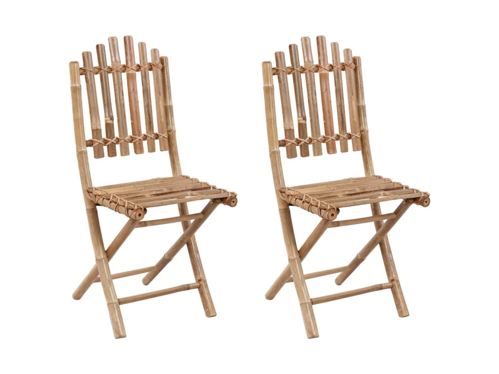 Zahradní židle je zhotovená z masivního bambusu, je tedy pevná a hodně toho vydrží. Skvěle také vzdoruje vodě a dalším klimatickým vlivům a k očištění vám postačí navlhčený hadřík. Jídelní židli lze složit, abyste ušetřili místo, když ji zrovna nepoužíváte. Přiložené podušky se vám při odpočinku postarají o maximální pohodlí. Jsou ušité ze 100% polyesteru, jsou tedy dostatečně silné a odolné, aby zvládly běžné venkovní používání. Každá z nich je opatřená dvěma páry šňůrek, kterými je můžete k židli pevně přichytit.