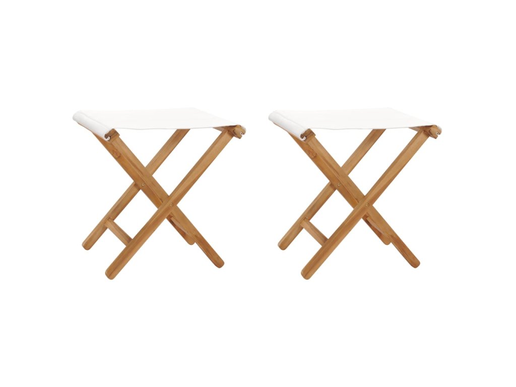 Skládací židle 2 ks masivní teakové dřevo a textil krémově bílé 310669