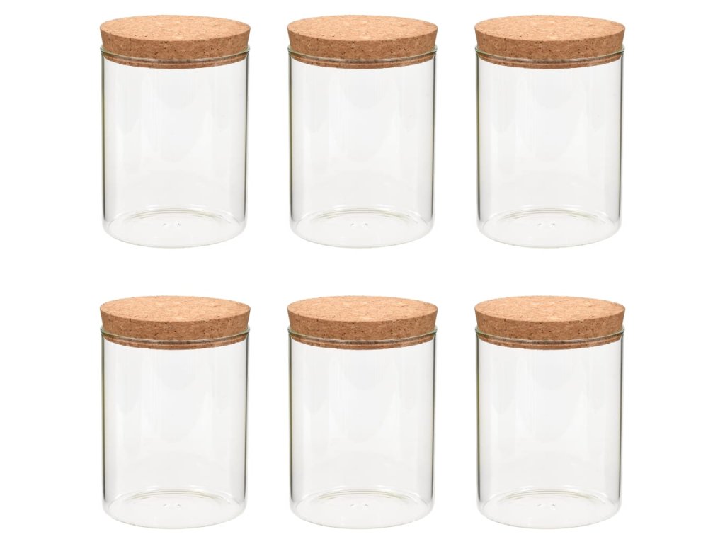 Skleněné dózy s korkovým víčkem 6 ks 650 ml 50839
