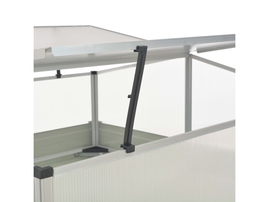 Zahradní skleník je vyroben z polykarbonátové desky a pozinkované oceli, je tedy mimořádně odolný a krásně zhotovený. Je dostatečně hluboký a široký, aby dokázal pojmout velké množství zeminy, a poskytl vám tak spoustu místa, kam si můžete zasadit svou zeleninu, rostliny, bylinky a květiny. Se svým jednoduchým čtvercovým designem se bude skvěle vyjímat na každém balkonu, terase či dvorku. Obvod spodní části skleníku má zahnuté okraje, aby nikde nevyčnívaly žádné ostré hrany. Konstrukce bez dna poskytuje rostlinám dobrou drenáž a zabraňuje hromadění vody, která způsobuje hnití kořenů rostlin. Rostlinám také umožňuje lépe přijímat živiny. Můžete ji umístit na půdu, trávu nebo betonovou podlahu. Sestavení výrobku je snadné. Upozorňujeme, že střecha skleníku nedokáže čelit těžké sněhové pokrývce.