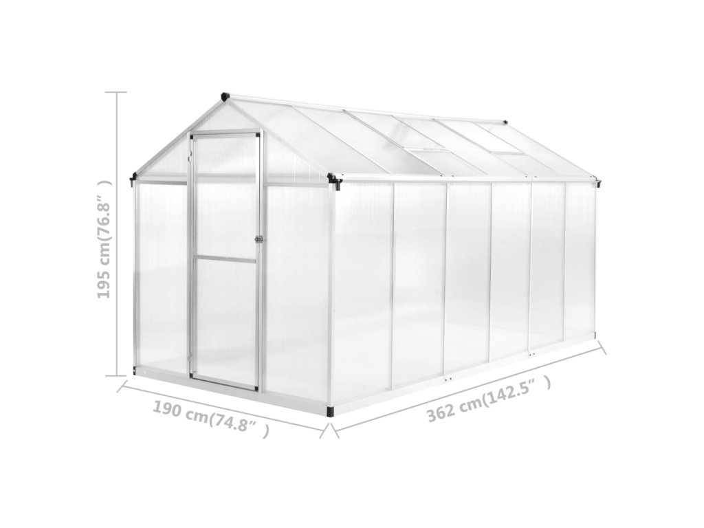 Skleník disponuje bytelnou hliníkovou konstrukcí, která zajišťuje jeho výtečnou stabilitu a nevyžaduje žádnou údržbu. Okapový systém efektivně odvádí vodu a dva průduchy ve střeše zajišťují optimální cirkulaci vzduchu během horkých dnů. Střešní okno je posuvné, takže se snadno instaluje, a zároveň je stabilnější než při použití svorek. Nevyžaduje žádné další pomůcky k otevírání či zavírání. Veškeré montážní příslušenství je součástí balení, sestavení skleníku je proto jednoduché.