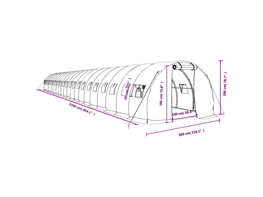 Skleník s ocelovým rámem bílý 66 m² 22 x 3 x 2 m 3188059