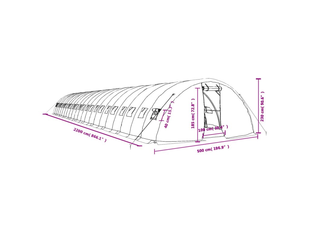 Skleník s ocelovým rámem zelený 110 m² 22 x 5 x 2,3 m 3188092