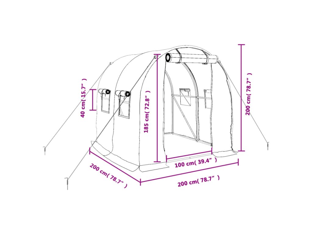 Skleník s ocelovým rámem zelený 4 m² 2 x 2 x 2 m 364073