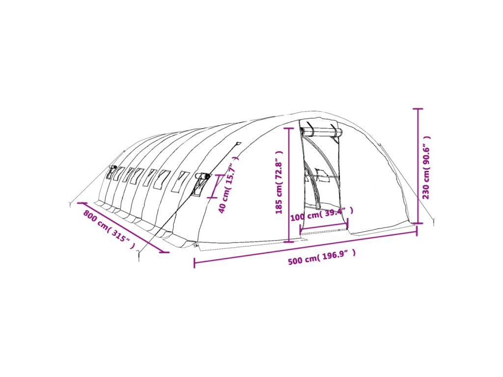 Skleník s ocelovým rámem zelený 40 m² 8 x 5 x 2,3 m 3188085
