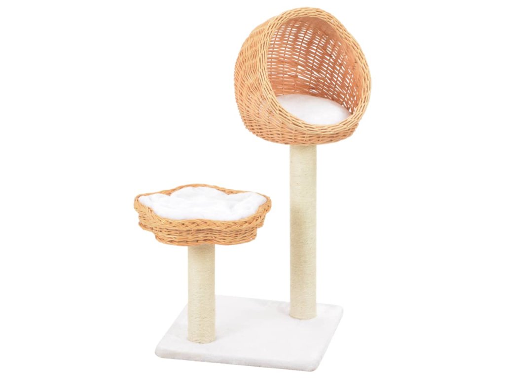 Kočičí strom dá vašim malým kamarádům příležitost protáhnout se a proběhnout, zejména během chladných zimních měsíců, kdy jsou zavření doma. Škrabací sloupky jsou omotány sisalovým provazem, na kterém si vaše kočičky mohou pohodlně a snadno brousit své drápky. Kočičí strom rovněž disponuje 2 útulnými košíky z vrbového proutí, kde si vaše kočka může zdřímnout nebo se prospat. Navíc je vybaven odnímatelnými a velmi pohodlnými polštáři, ve kterých si bude moct vaše kočka příjemně odpočinout.