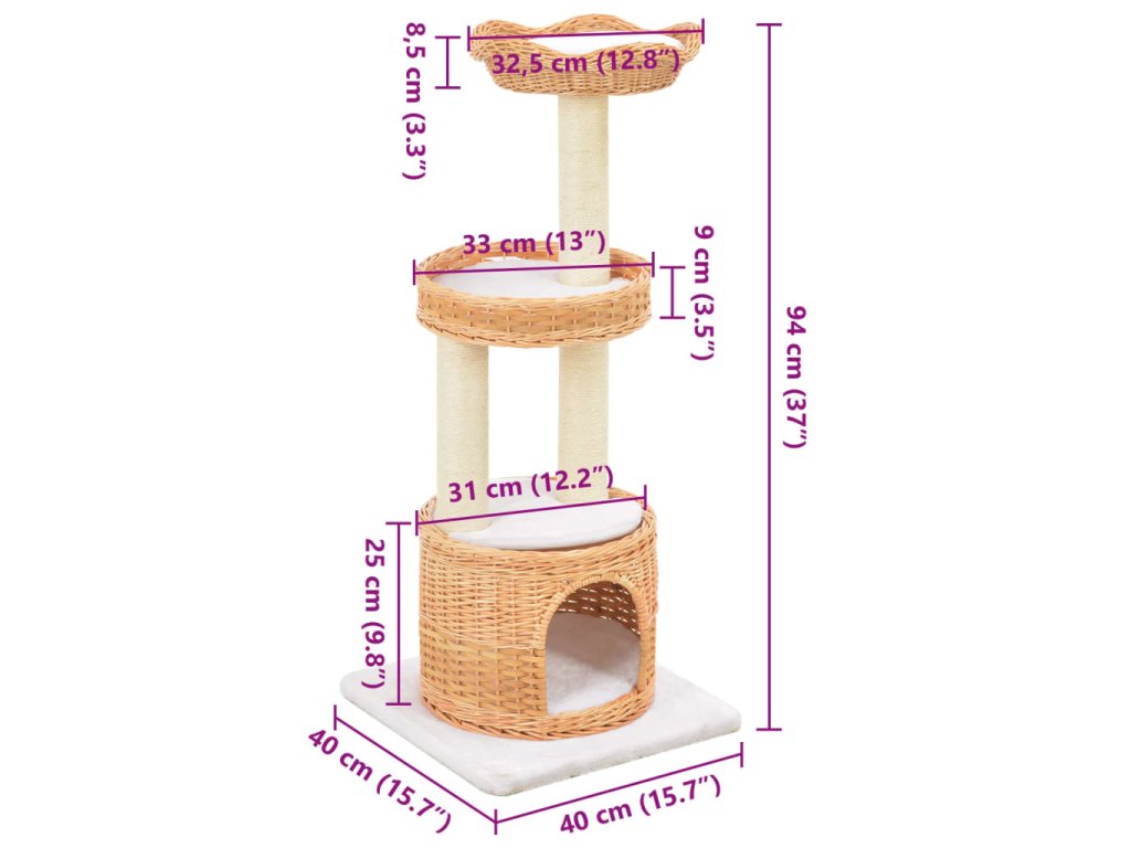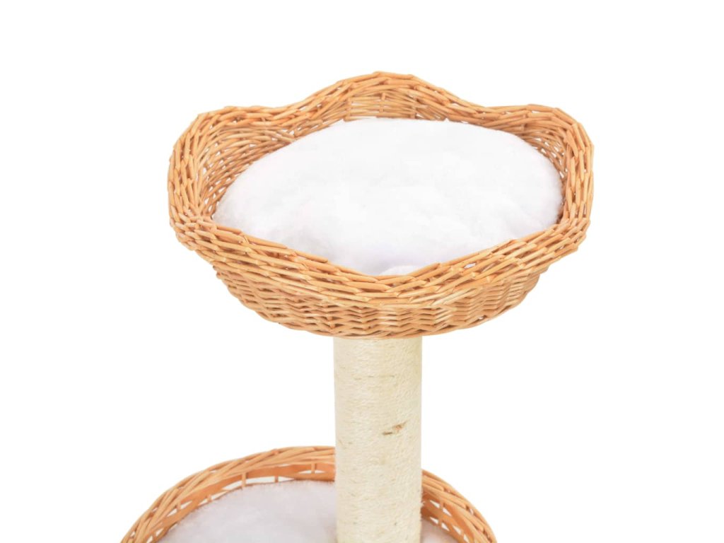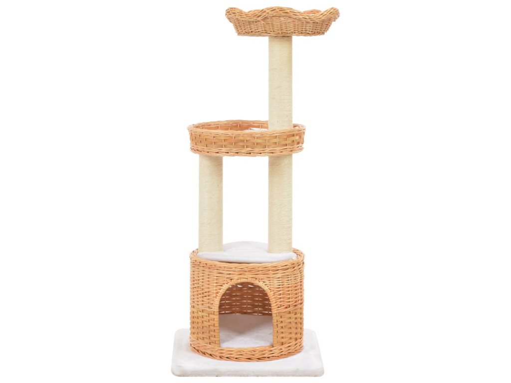 Kočičí strom dá vašim malým kamarádům příležitost protáhnout se a proběhnout, zejména během chladných zimních měsíců, kdy jsou zavření doma. Škrabací sloupky jsou omotány sisalovým provazem, na kterém si vaše kočičky mohou pohodlně a snadno brousit své drápky. Kočičí strom rovněž disponuje 2 útulnými košíky z vrbového proutí a 1 domečkem, kde si vaše kočka může zdřímnout nebo se prospat. Navíc je vybaven odnímatelnými a velmi pohodlnými polštáři, na kterých se bude vaší kočce příjemně odpočívat.