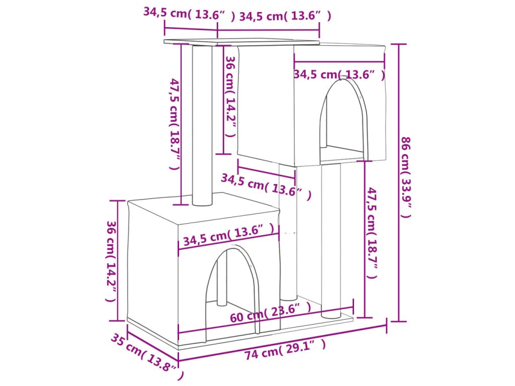 - Všestranná věž pro kočky: Víceúrovňový nábytek pro kočky je navržen se 2 domečky a plošinami, které poskytují kočkám ideální místo pro šplhání, sezení, škrábání, schovávání se a také k odpočinku.