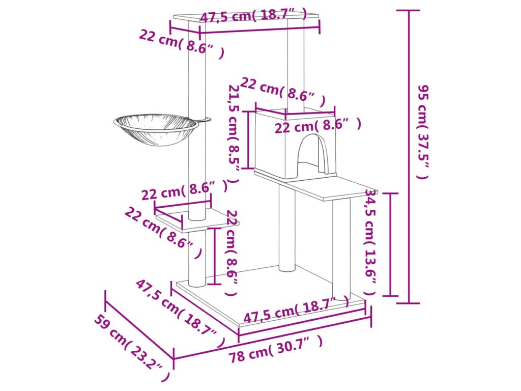 - Všestranná věž pro kočky: Víceúrovňový nábytek pro kočky je navržen s domečkem, košem a plošinami, které poskytují kočkám ideální místo pro šplhání, sezení, škrábání, schovávání se a také k odpočinku.