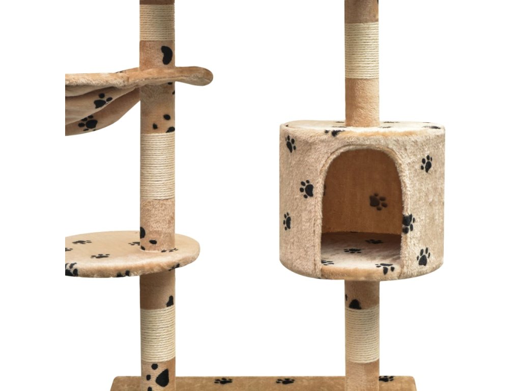 Škrabadlo pro kočky sisalové sloupky 125cm béžová potisk tlapek 170483