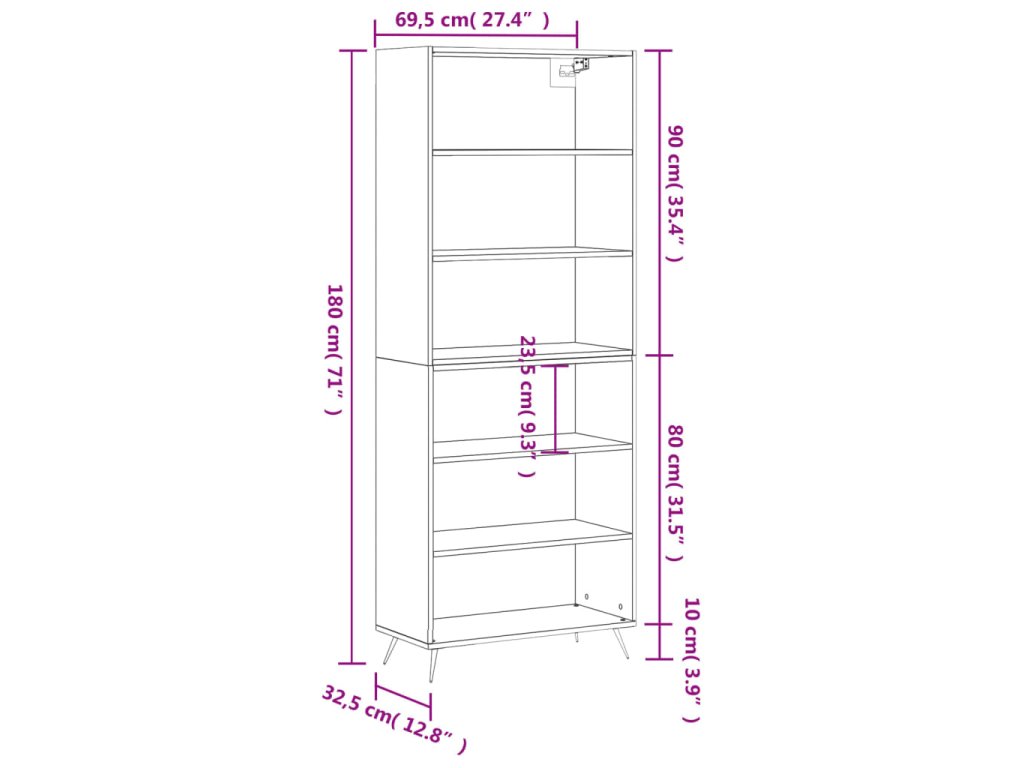 - Celkové rozměry: 69,5 x 32,5 x 180 cm (Š x H x V)