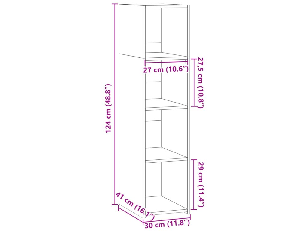- Rozměry: 30 x 41 x 124 cm (Š x H x V)