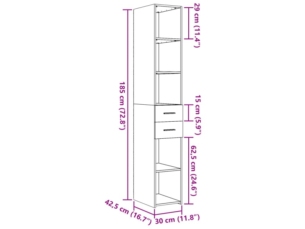 - Rozměry: 30 x 42,5 x 185 cm (Š x H x V)