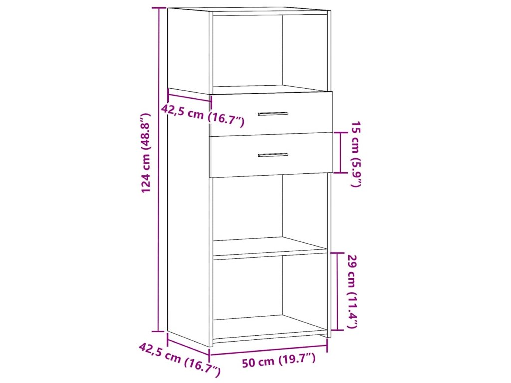 - Rozměry: 50 x 42,5 x 124 cm (Š x H x V)