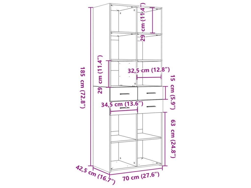 - Rozměry: 70 x 42,5 x 185 cm (D x Š x V)