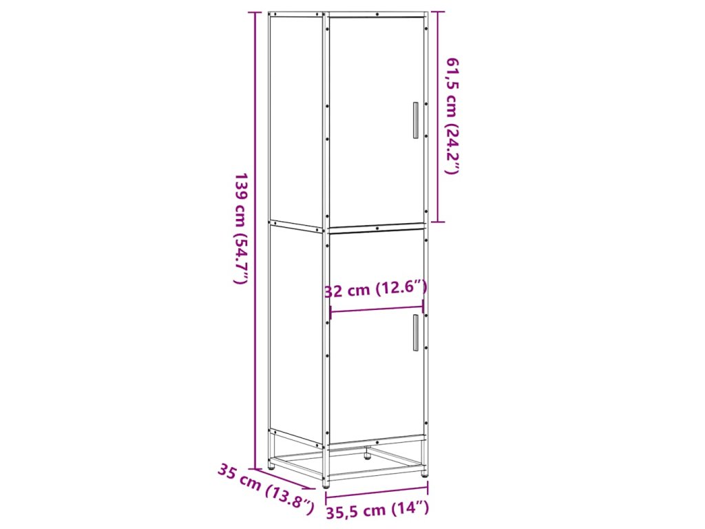 Skříň highboard hnědý dub 35,5x35x139 cm kompozit a kov 849058