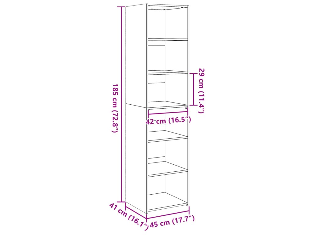 - Rozměry: 40 x 41 x 185 cm (D x Š x V)