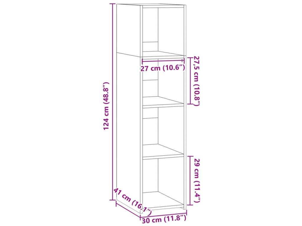 - Rozměry: 30 x 41 x 124 cm (Š x H x V)
