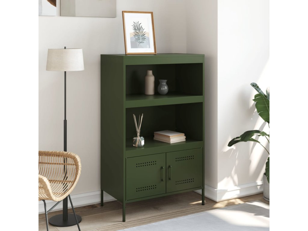 Skříň highboard olivově zelená 68 x 39 x 113 cm ocel 842974