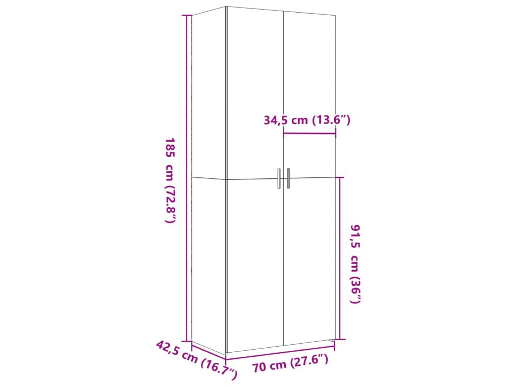 - Rozměry: 70 x 42,5 x 185 cm (D x Š x V)
