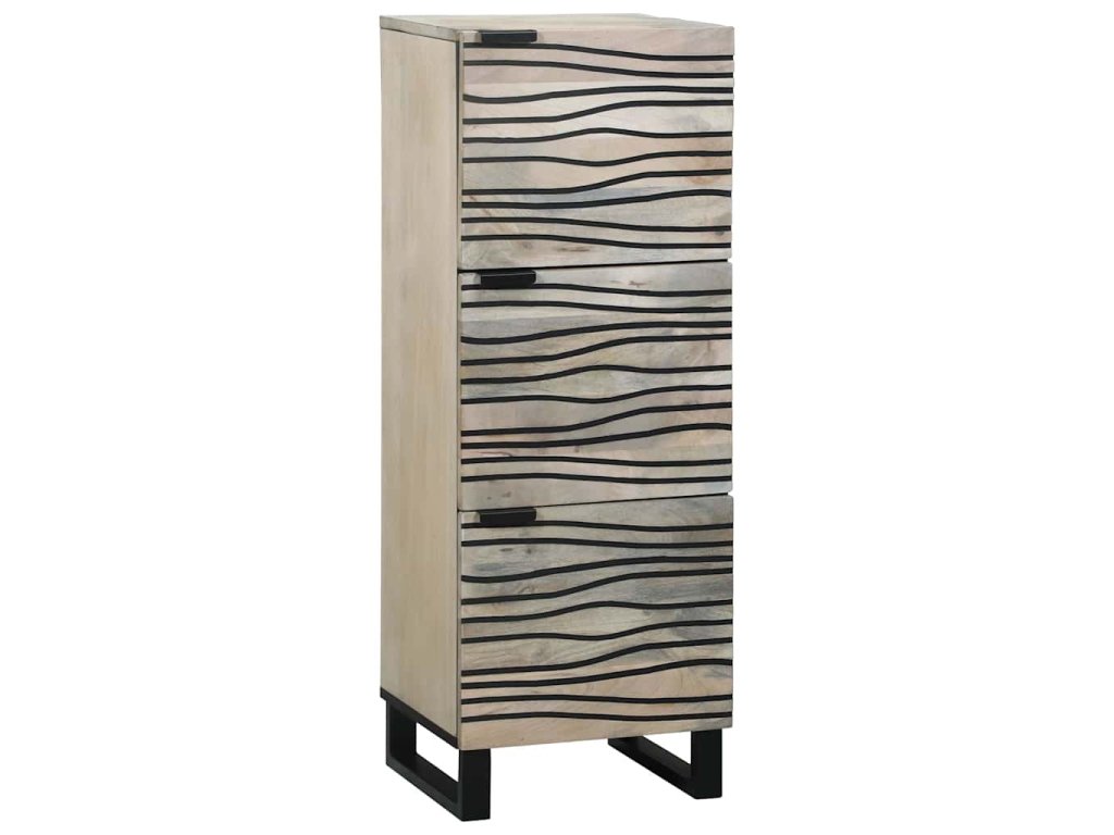 Tahle rustikální vysoká skříň je super kousek nábytku pro každý obývák. Obdélníkový tvar a krásný vlnitý vzor kombinují úložný prostor s elegantním vzhledem, což z ní dělá opravdovou hvězdu vašeho domova.
