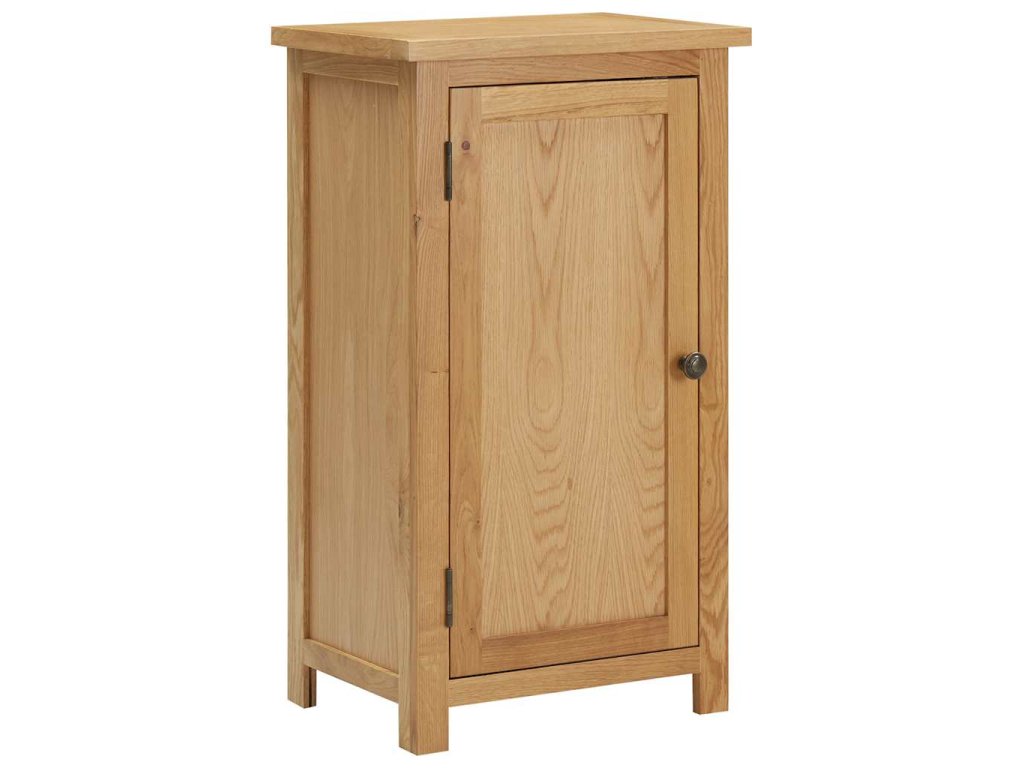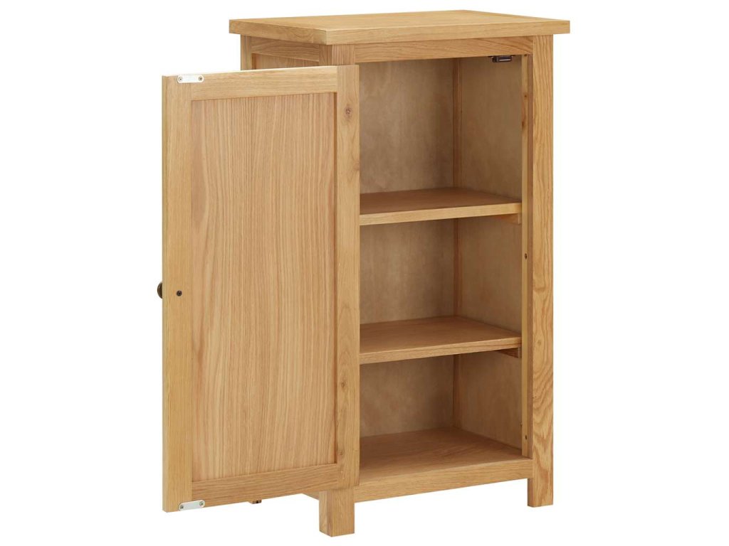 Kredenc je vyrobená z masivního dubového dřeva s přírodním povrchem a MDF s dubovou dýhou. Dřevěná komoda má stabilní horní desku pro vystavení ozdobných předmětů. Uvnitř skříňky jsou 3 vnitřní police, které poskytují dostatečný prostor pro ukládání misek, talířů, hrnců a dalšího kuchyňského nádobí. Malá skříňka má jedny dvířka.
