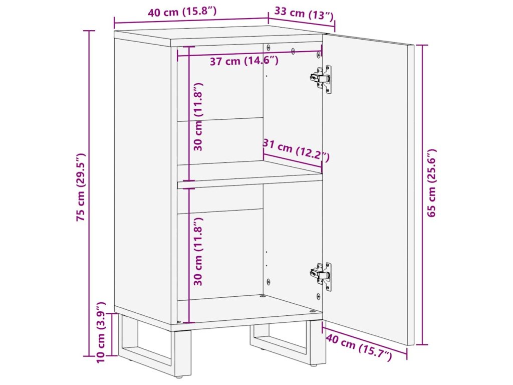- Masivní mangovné dřevo: Tato skříňka se skládá hlavně z masivního mangovního dřeva, které je odolné a vydrží věčnost. Přírodní krása dřeva dodává kouzlo a můžeš si být jistý, že zvládne každodenní používání. Skvěle se hodí k rustikálnímu stylu, přináší domů příjemnou atmosféru.