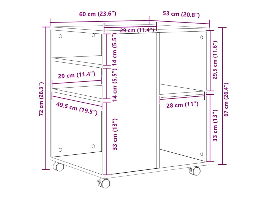 Skříňka na kolečkách hnědý dub 60 x 53 x 72 cm kompozitní dřevo 815971