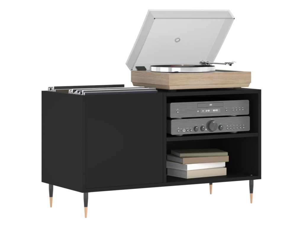 - Dostatek úložného prostoru: Prostorná gramofonová skříňka nabízí dostatek úložného prostoru pro LP desky a udržuje vaši hudební sbírku přehledně uspořádanou.