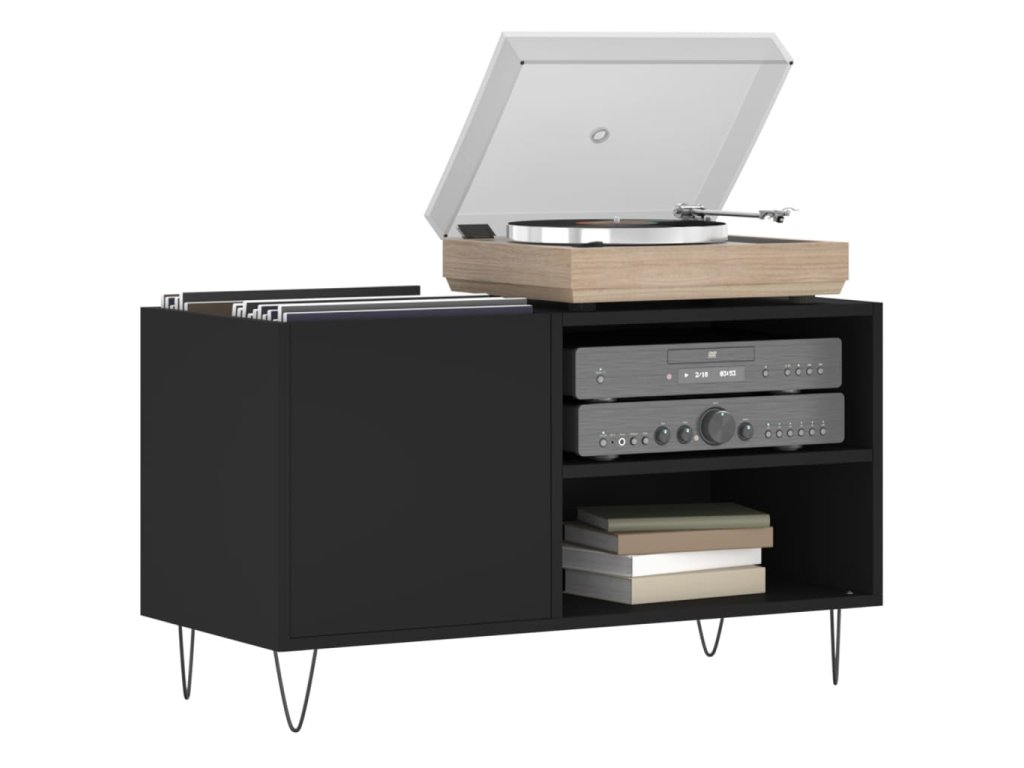 - Dostatek úložného prostoru: Prostorná gramofonová skříňka nabízí dostatek úložného prostoru pro LP desky a udržuje vaši hudební sbírku přehledně uspořádanou.