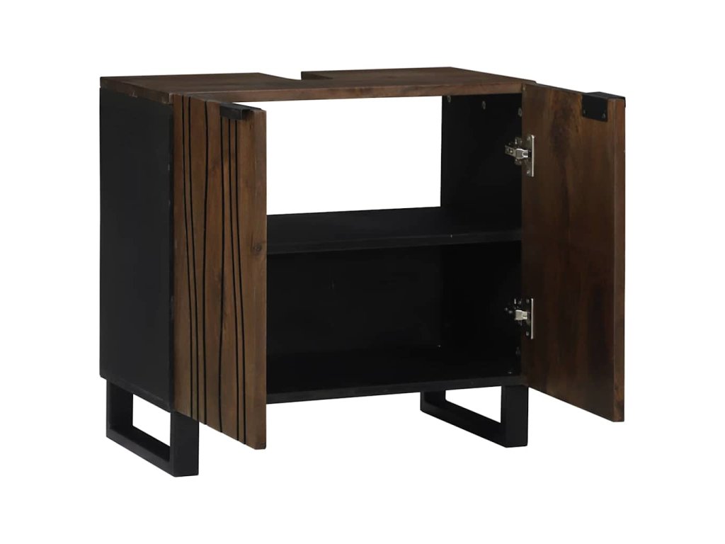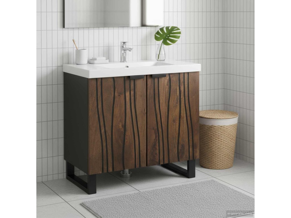 Tento koupelnový skříňka je ideální na úložný prostor pro jakoukoliv moderní koupelnu. S elegantním minimalistickým designem kombinuje funkčnost se stylem a hodí se do každého interiéru. Konstrukce z inženýrskýho dřeva a železné nohy zajišťujou stabilitu a dlouhou životnost. Texturovanej černej povrch dodává eleganci, což z něj dělá středobod místnosti.