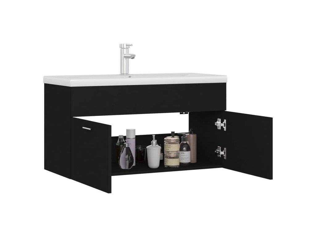 Skříňka se zápustným umyvadlem černá kompozitní dřevo 3071289