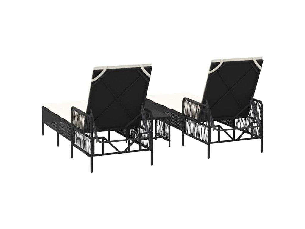 Slunečník s polštářem 3 pcs Černá a krémově bílá polyratan 365432
