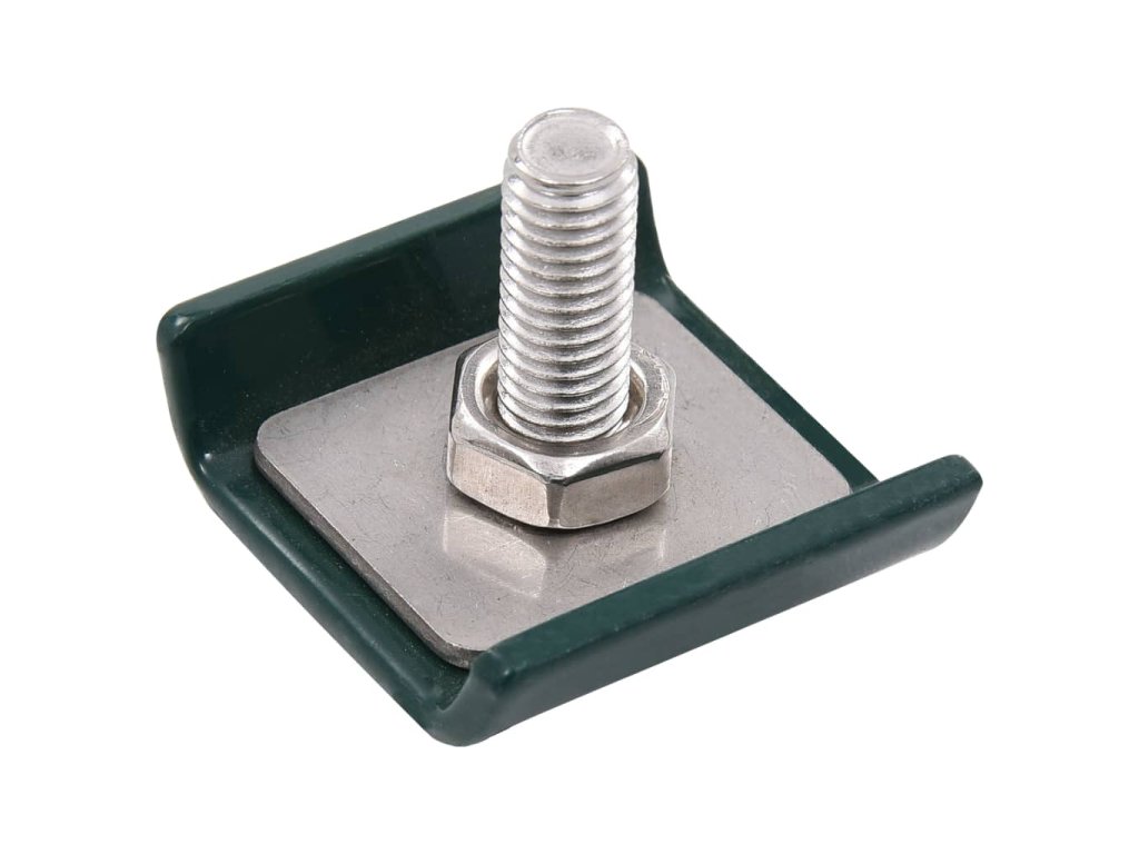 Obě destičky i šroub s maticí jsou vyrobené z oceli se žárovým pozinkováním. Tato sada je odolná vůči rzi a zaručuje dlouhodobou životnost.