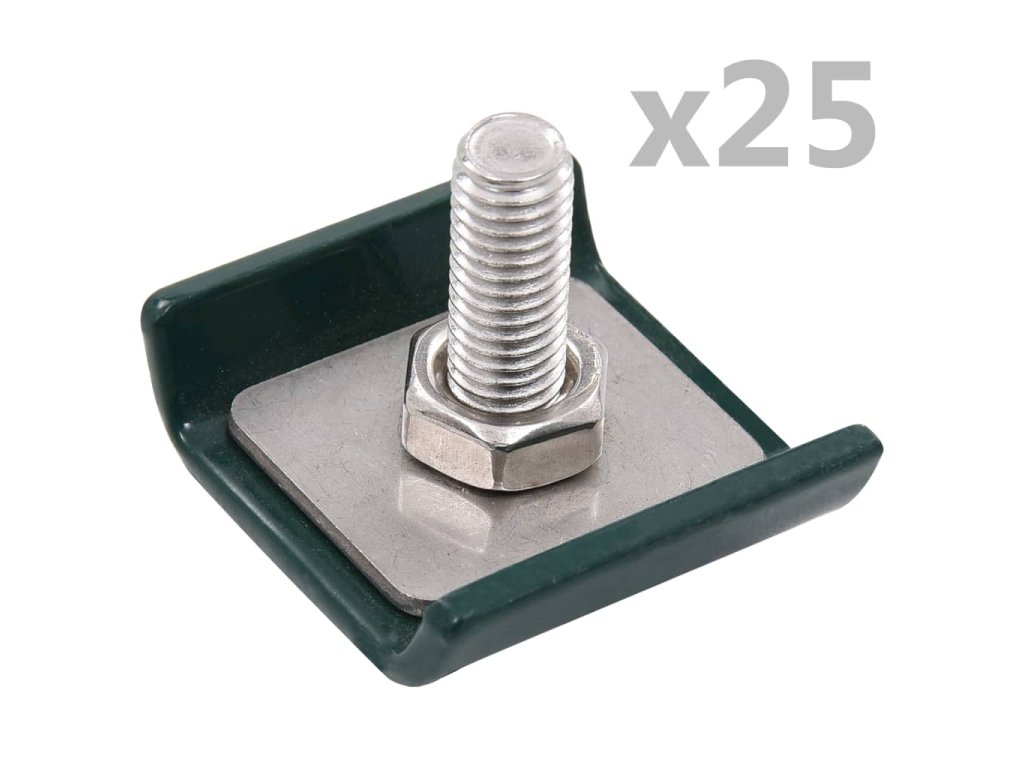 Balení obsahuje 25 setů v jednom balení. Každá sada se skládá z 1 čelní destičky, 1 zadní destičky, 1 šroubu a 1 matice.