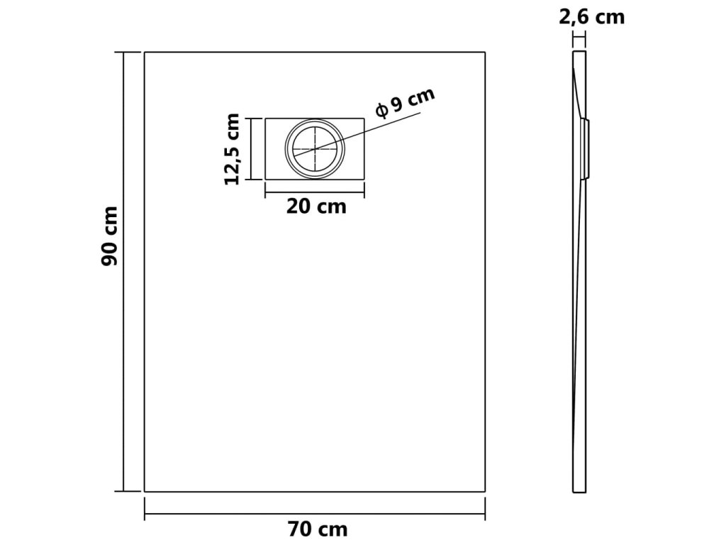 - Otvor pro standardní odtok s průměrem 9 cm (odtok není součástí balení)