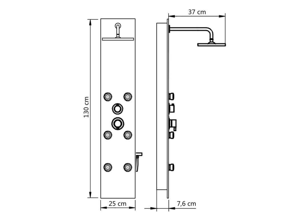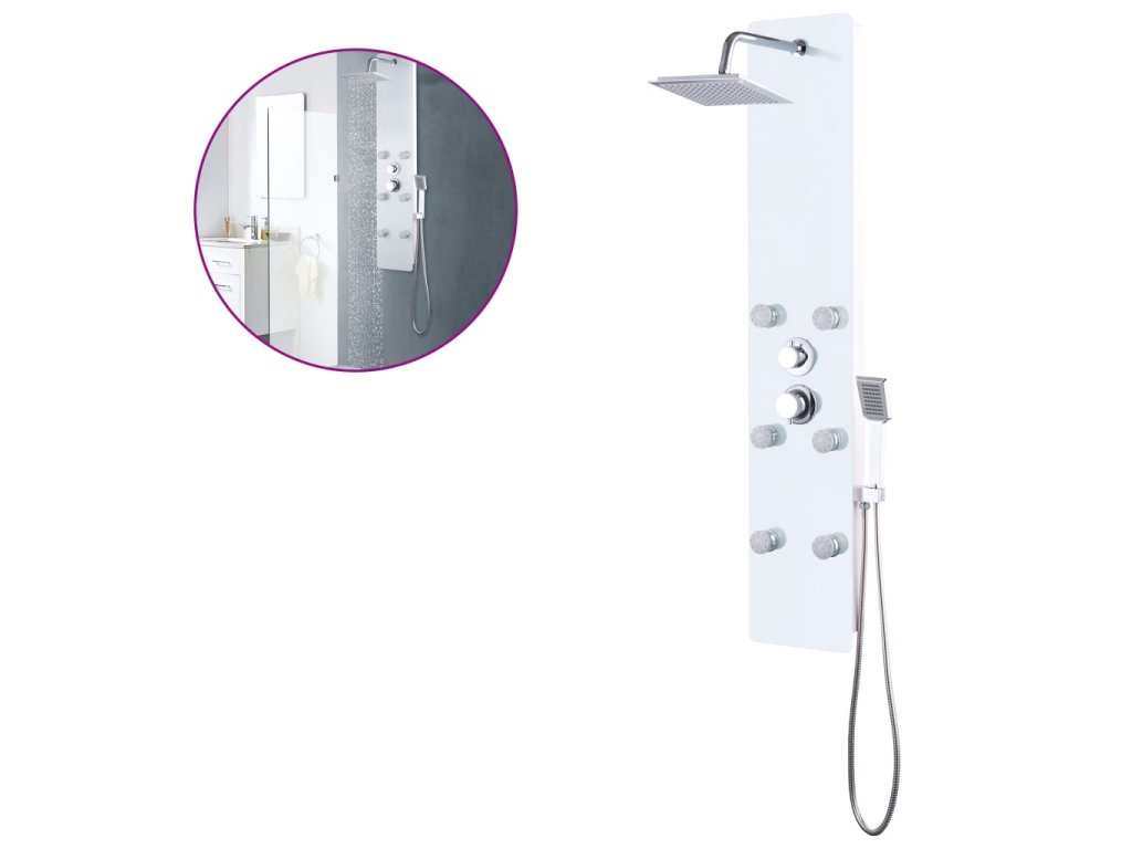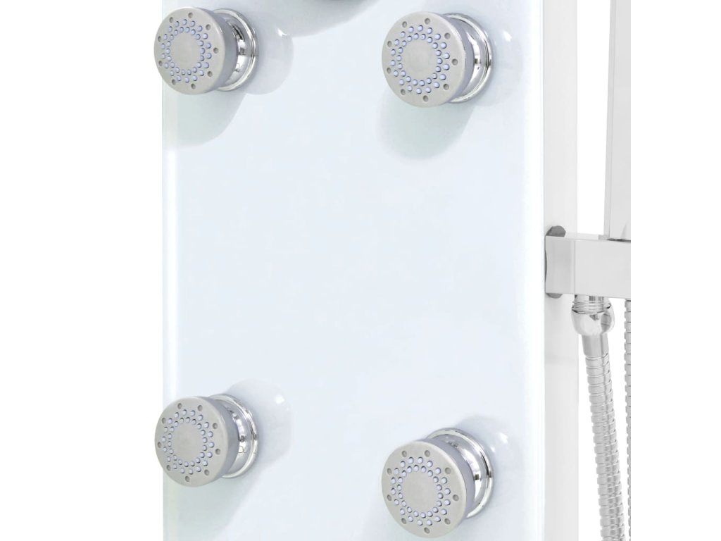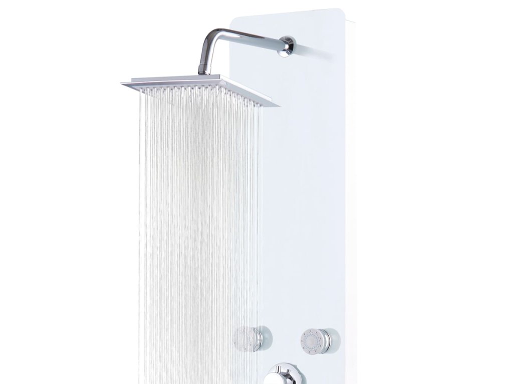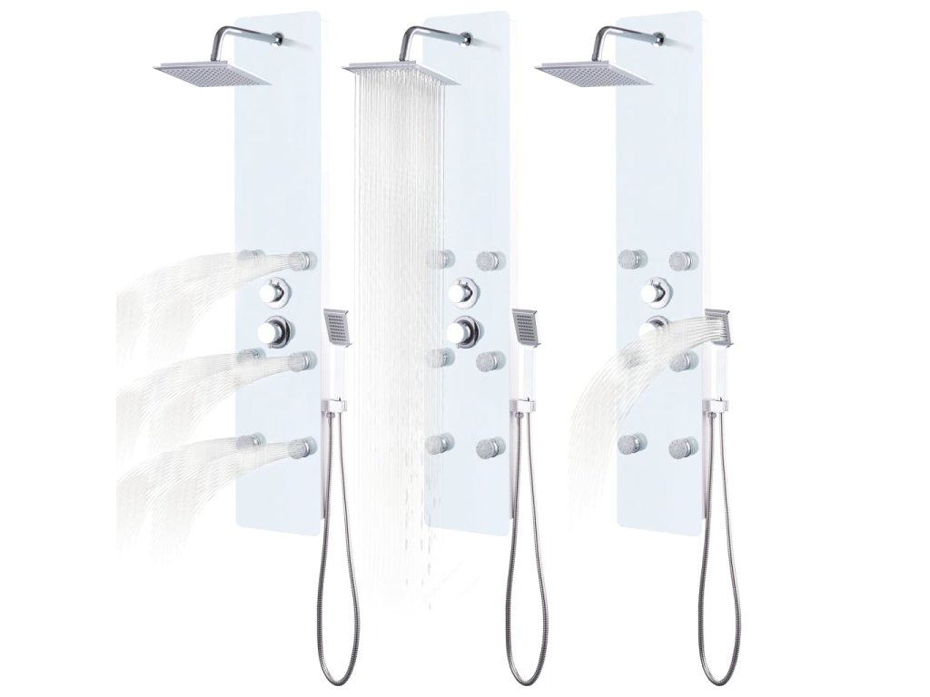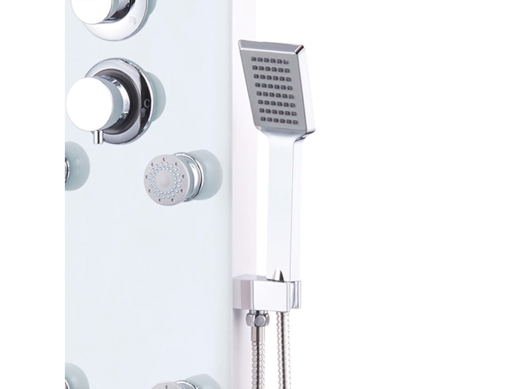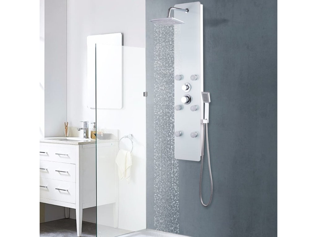 Sprchový panel je vyroben z nerezové oceli a tvrzeného skla. Tvrzené sklo se vyrábí řízeným tepelným nebo chemickým zpracováním, je tedy mnohem odolnější a bezpečnější než běžné sklo. Panel nabízí tři funkce způsobu sprchování: tropický déšť, hydromasážní trysky a ruční sprchu, mezi nimiž se dá snadno přepínat. Silikonové trysky jsou odolné vůči usazování vodního kamene. Dopřejte si tu pravou relaxaci při každém sprchování a potěšte se krásou moderního stylu tohoto sprchového panelu! Montáž je snadná.