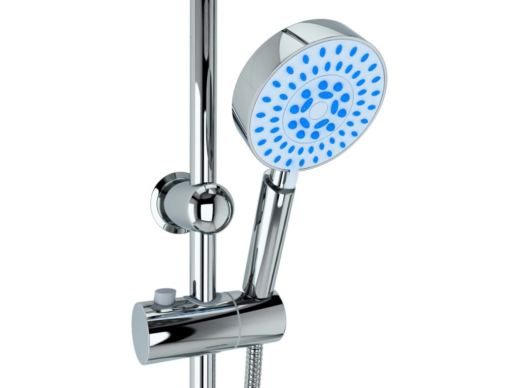 - Materiál: nerezová ocel (sprchová hlavice, hadice, tyč) + ABS (ruční sprcha)