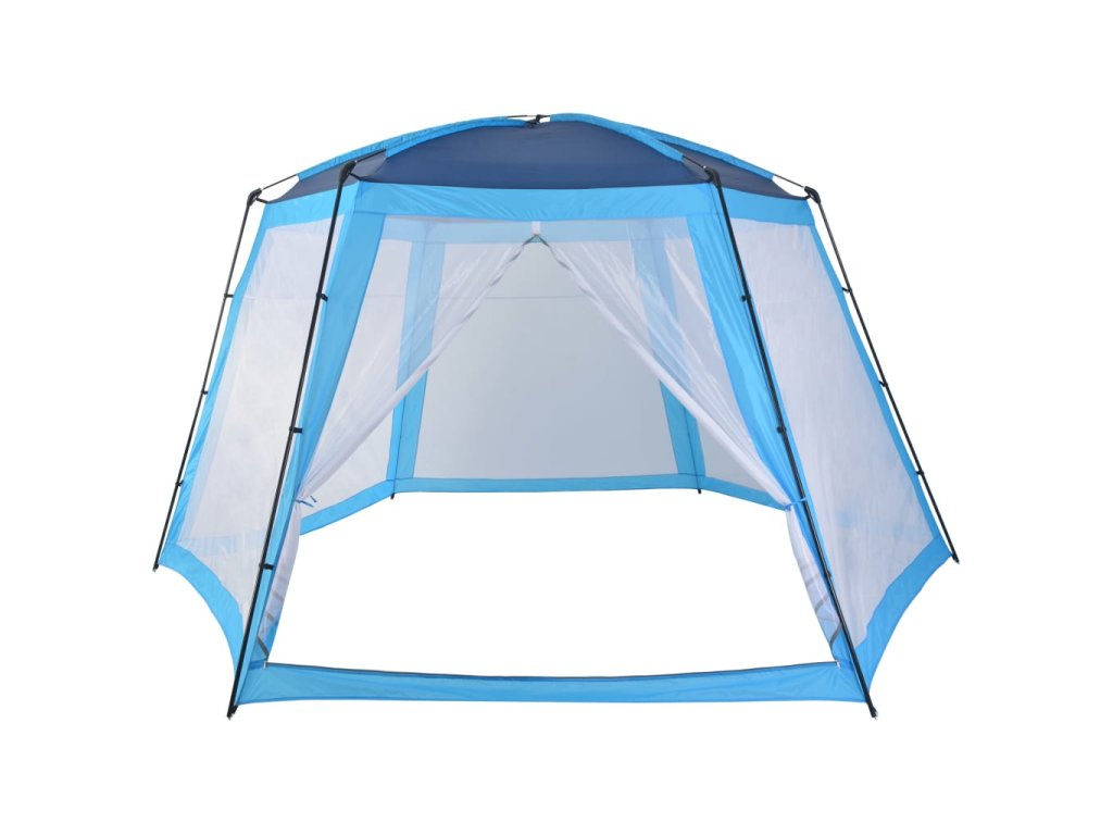Party stan je vyroben z polyesterové tkaniny potažené vrstvou PA, což znamená, že výborně odolává UV záření. Zásluhou silného ocelového rámu je tento stan pevný a dlouho vydrží. Síťované boční stěny umožňují optimální větrání. Hodí se nad kruhové bazény o maximálním průměru 300 cm.