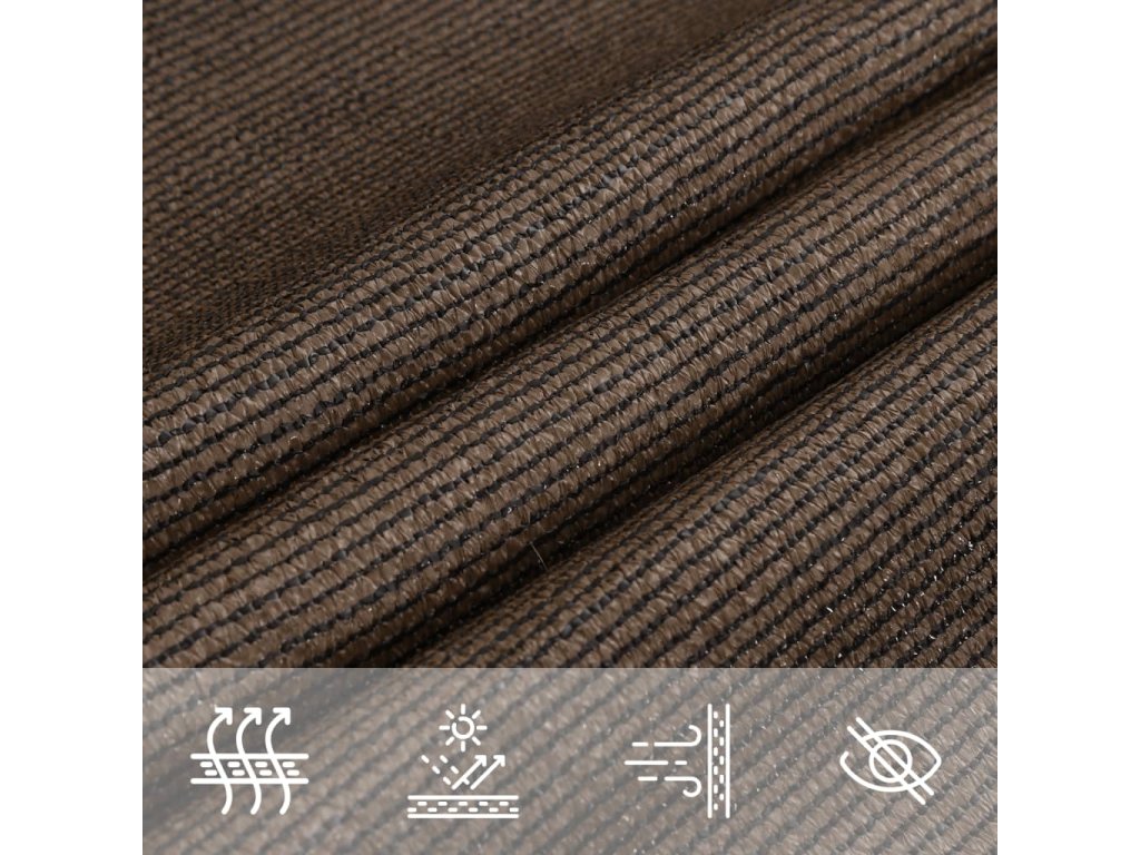 Stínicí plachta ze 100% HDPE (polyetylenu s vysokou hustotou) vás ochrání před přímým slunečním zářením a přitom dává průchod dostatku větru. Je také vodopropustná. HDPE je speciálně upravený materiál, který je odolný vůči plísním a UV záření. Plachtu proti slunci lze snadno nachystat a upevnit dodanými lanky a nerezovými spojovacími prvky v každém rohu.
