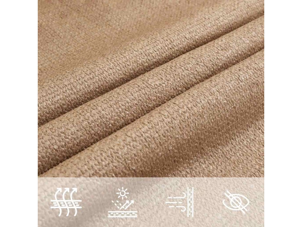 Sluneční plachta vyrobená ze 100% HDPE (vysokohustotní polyethylen) vás chrání před přímým slunečním zářením, umožňuje dostatečný průchod vzduchu a je propustná pro vodu. HDPE je speciálně upraven, takže je odolný proti plísním a UV záření. Slunečník se snadno sestavuje pomocí nerezových upevňovacích prvků na každém rohu a přiložených lanek.