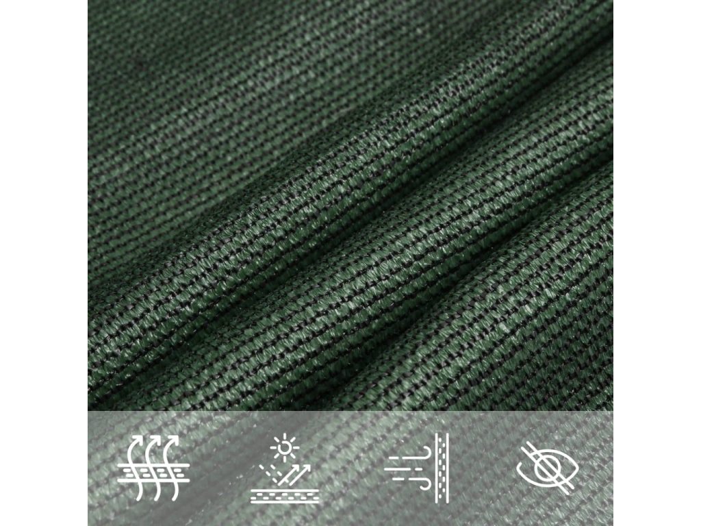 Sluneční plachta vyrobená ze 100% HDPE (vysokohustotní polyethylen) vás chrání před přímým slunečním zářením, umožňuje dostatečný průchod vzduchu a je propustná pro vodu. HDPE je speciálně upraven, takže je odolný proti plísním a UV záření. Slunečník se snadno sestavuje pomocí nerezových upevňovacích prvků na každém rohu a přiložených lanek.