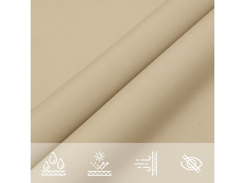 Tato plachta proti slunci je vyrobená z oxfordské látky potažené vrstvou PU, takže vás ochrání před přímým slunečním světlem a deštěm. Látka je speciálně ošetřena, je tedy odolná vůči plísni a UV záření.