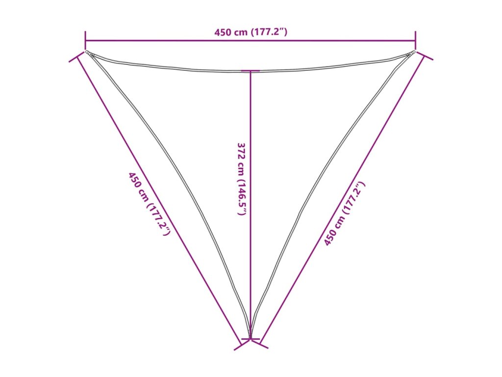 Stínící plachta oxfordská látka trojúhelník 4,5x4,5x4,5 m žlutá 135618