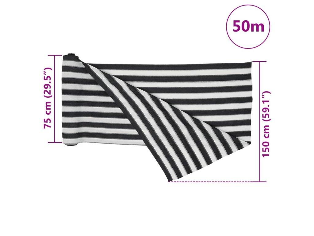Stínicí tkanina antracitová a bílá 1,5 x 50 m HDPE 150 g/m² 4003679