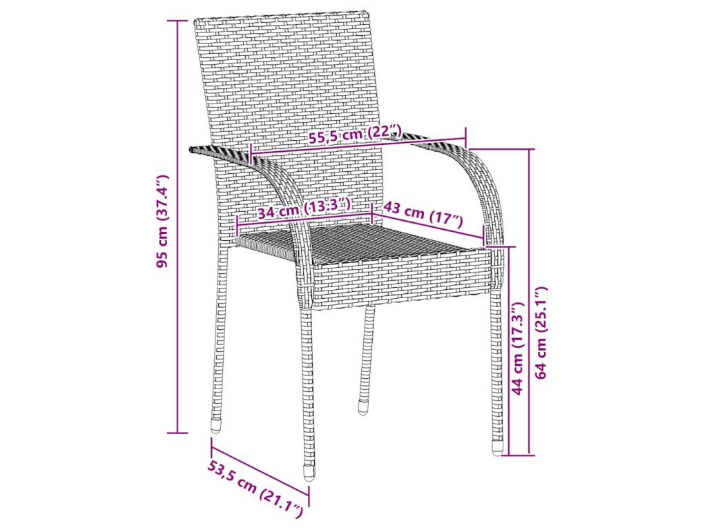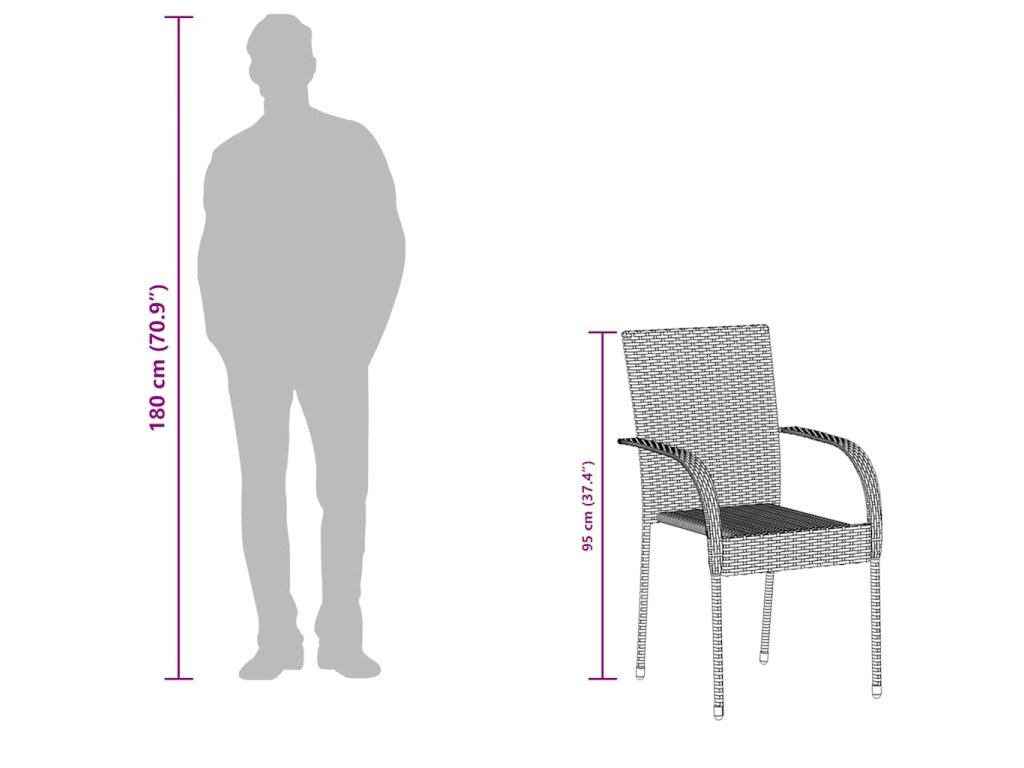 Stohovatelné zahradní židle jsou vyrobeny z voděodolného PE ratanu, takže se snadno čistí, jsou pevné a vhodné pro každodenní venkovní použití. Zahradní židle disponují ocelovým rámem s práškovým nástřikem, jenž zajišťuje jejich odolnost a stabilitu. Židle jsou lehké, a když je právě nepoužíváte, můžete je snadno stohovat a ušetřit tak místo.