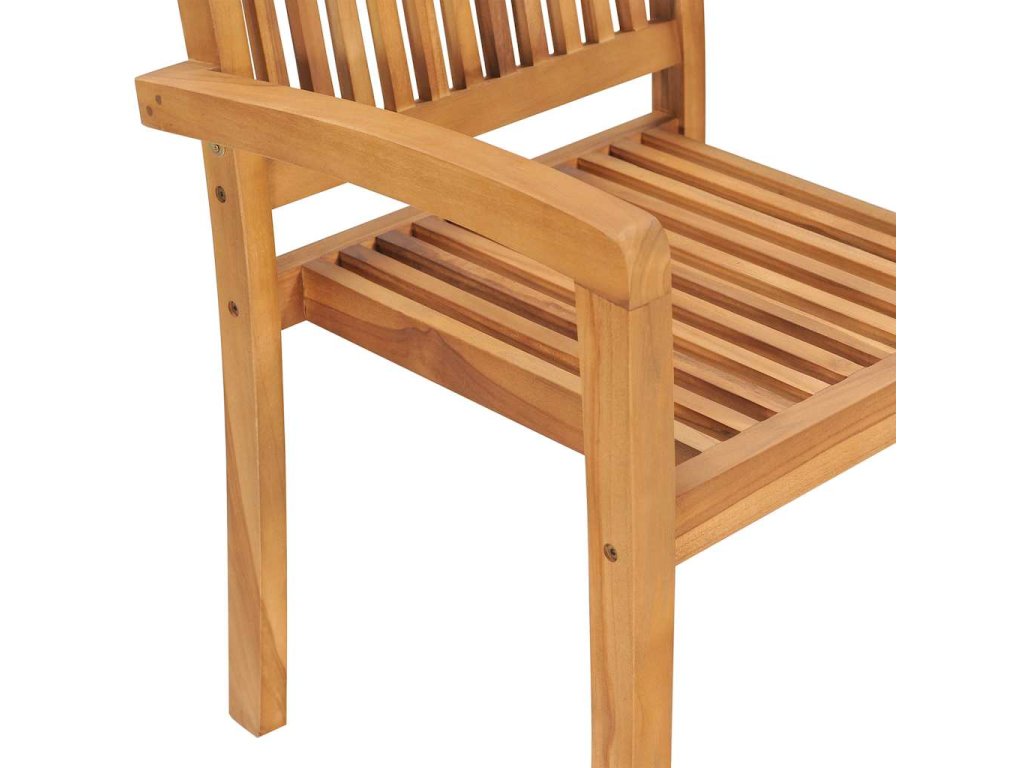 Nábytek je zhotovený z extrémně odolného teakového dřeva, které již prošlo procesem smršťování, bylo uměle vysušené a poté jemně a dohladka obroušené. Toto tvrdé dřevo je oceňované pro svou výjimečnou pevnost a klimatickou odolnost, a proto představuje zdaleka nejvhodnější materiál pro výrobu zahradního nábytku. Jedná se o skvělou volbu, pokud si chcete pořídit zahradní vybavení, které vám vydrží sloužit dlouhá léta. K údržbě a čištění vám postačí navlhčený hadřík. Jídelní židle lze navíc stohovat, když je zrovna nepoužíváte, aby vám zbytečně nezabíraly místo. O komfort se vám postarají přiložené podušky. Každá z nich je opatřená 2 páry šňůrek, za které ji k židli můžete pevně přivázat.