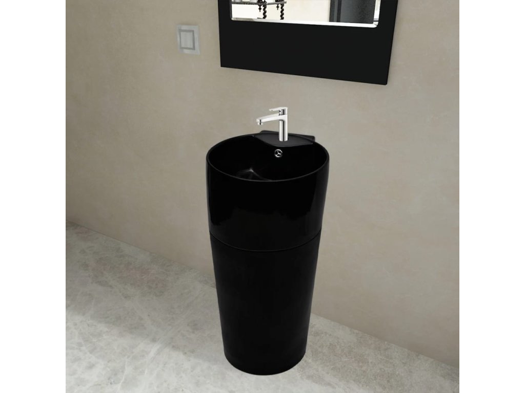 Stojací umyvadlo keramické kulaté černé, otvor na baterií, přepad 141943