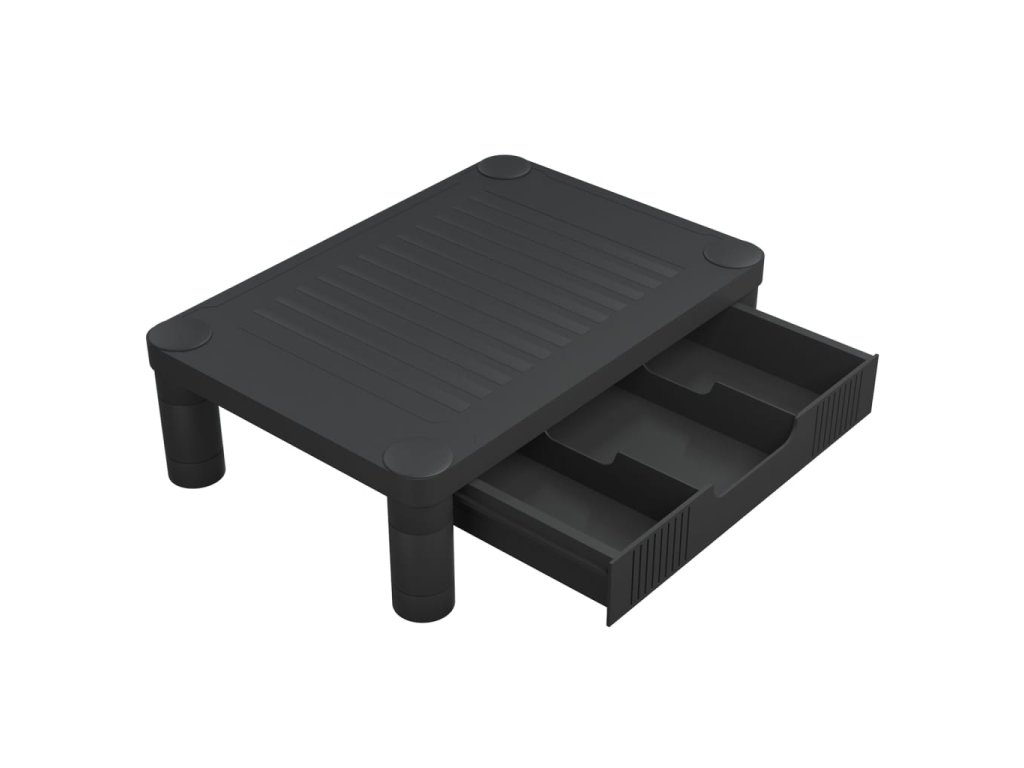 - Úložný prostor: Stojan na monitor se zásuvkou pojme notebooky, psací potřeby a podobné předměty.
